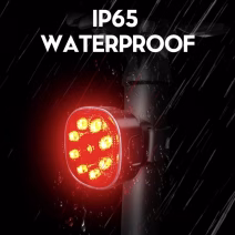 - With an IP65 waterproof rating, the Q9 rear light is built to handle rain rides, wet roads, and muddy trails.